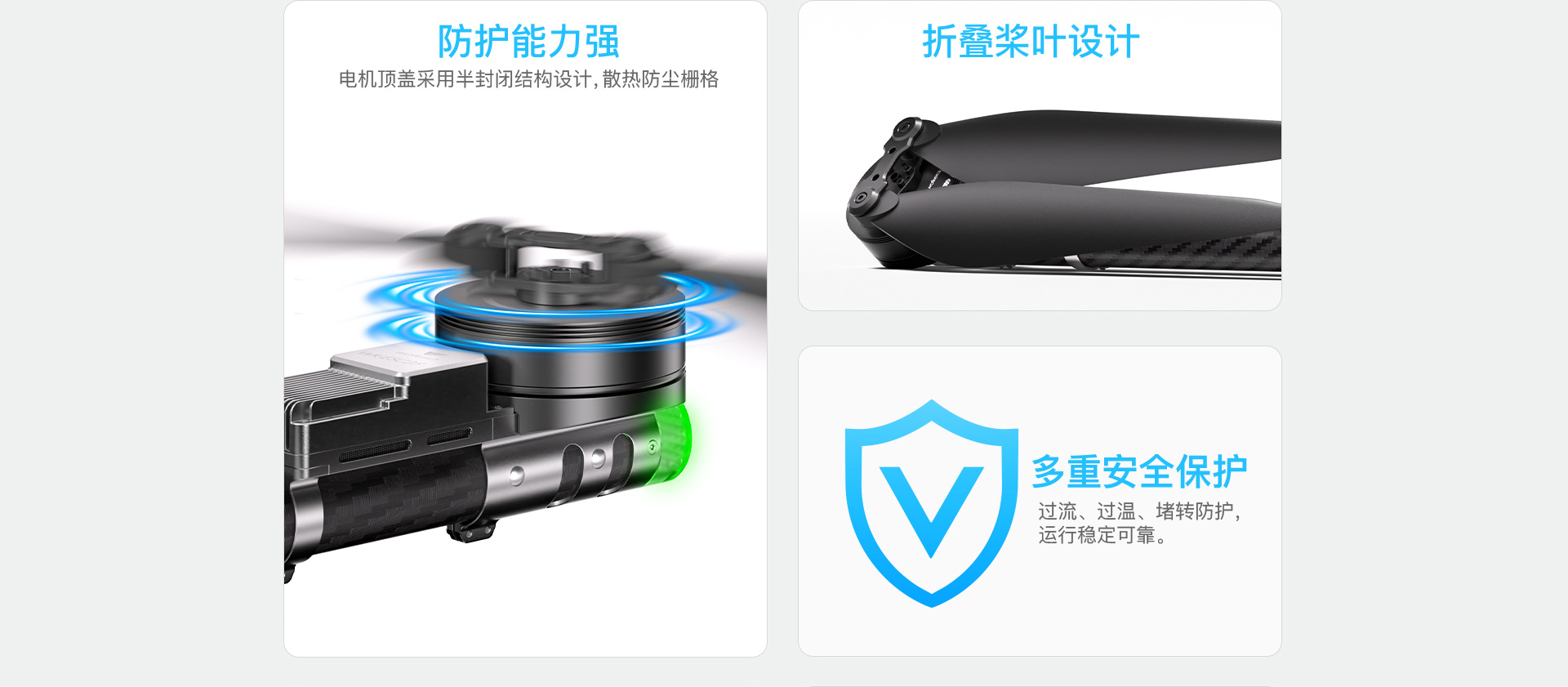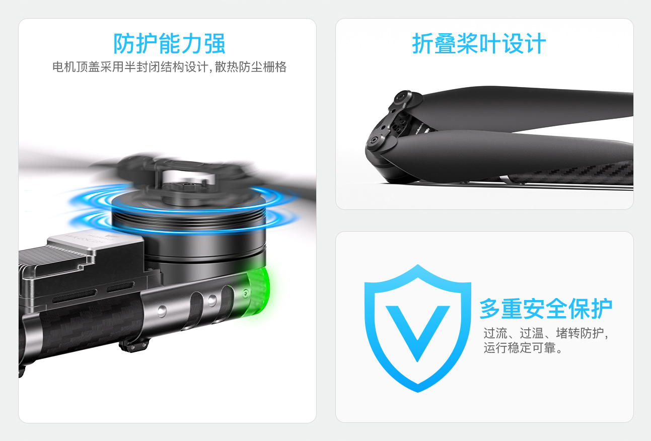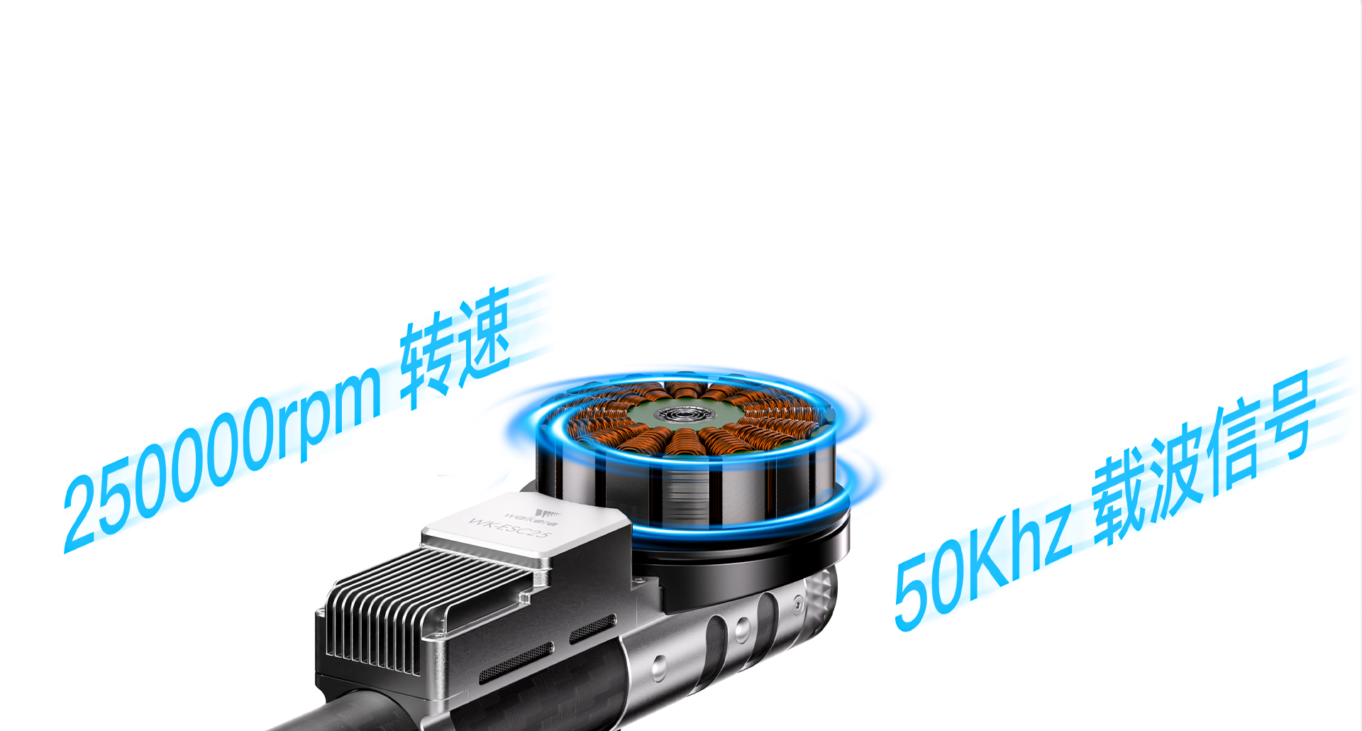 最高50Khz载波信号,支持最高电气转速250000rpm,电机控制分辨率更高。飞行姿态控制更加细腻。