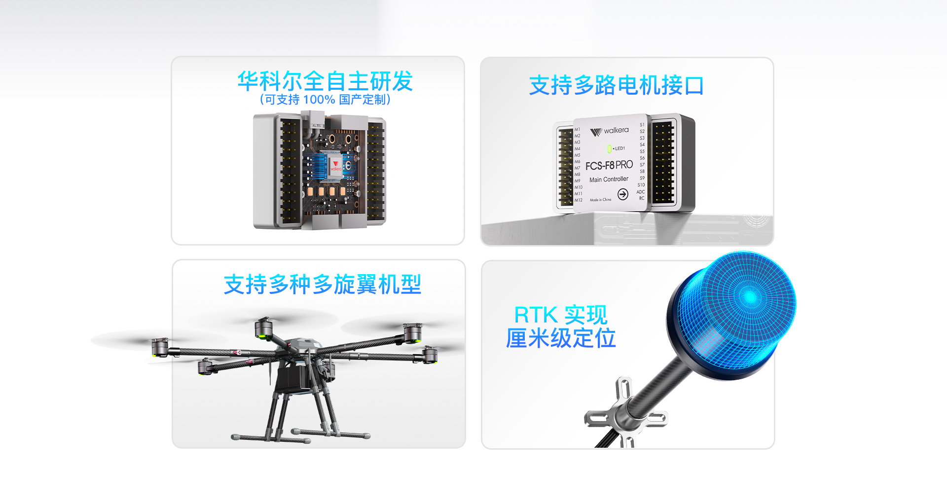 FCS-F8 PRO是华科尔自主研发的高性能无人控制系统,经过多年的行业经验积累,解决多项飞控行业难题,给您带来安全精准的飞行体验。
