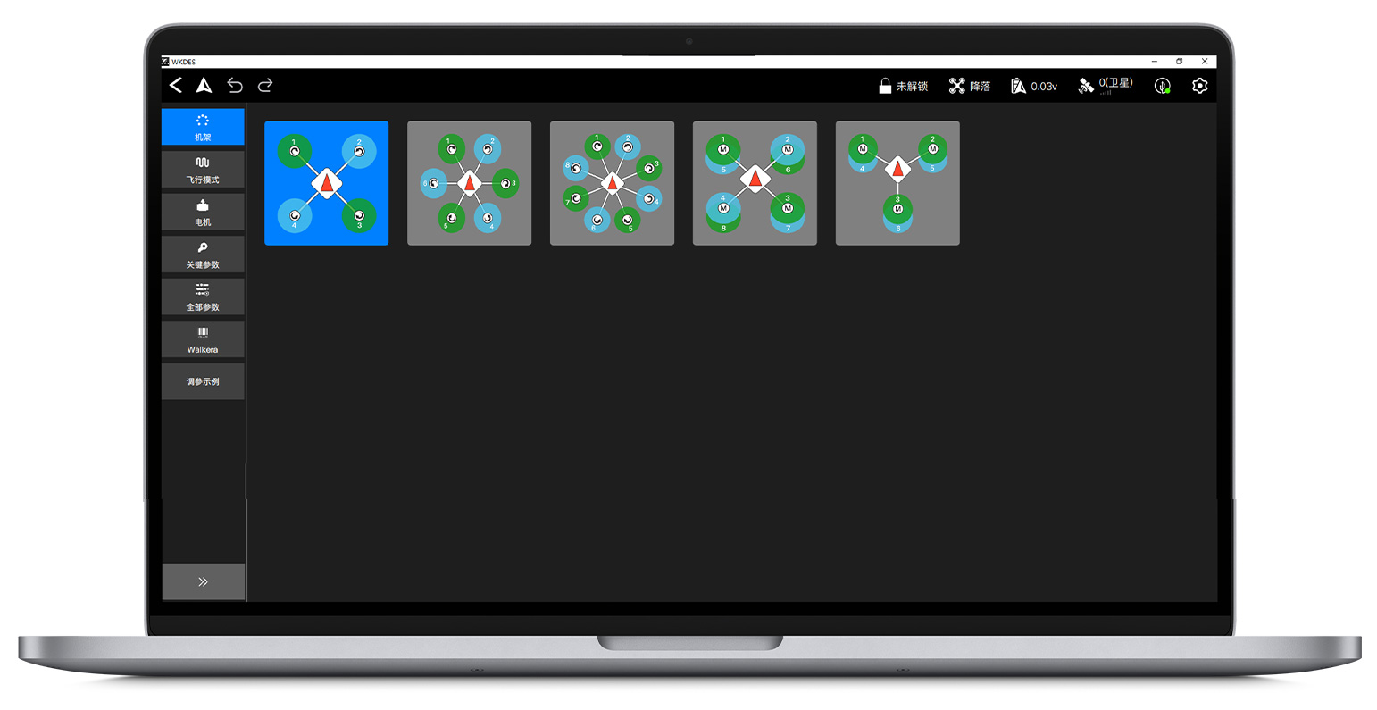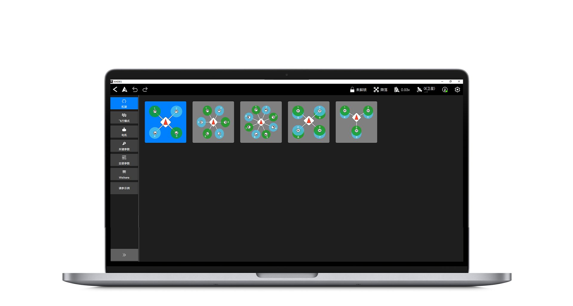 去除繁锁的参数调节,简洁直观的图形交互,装机飞行调试方便快捷,新手也可以快速上手!