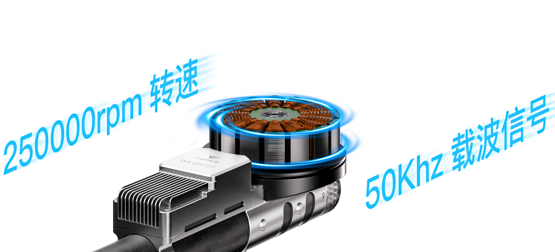 最高50Khz载波信号,支持最高电气转速250000rpm,电机控制分辨率更高。飞行姿态控制更加细腻。