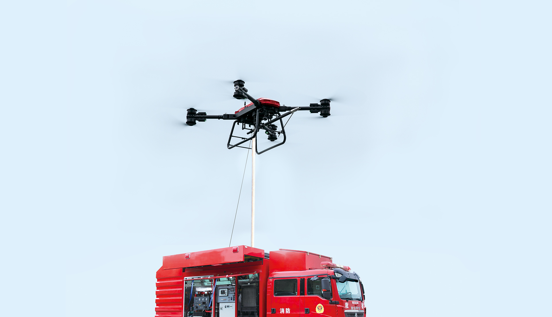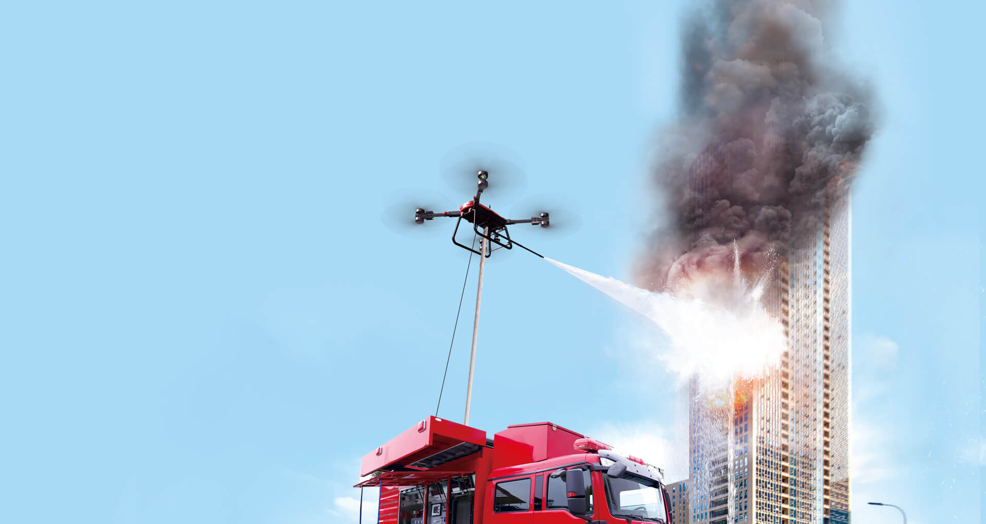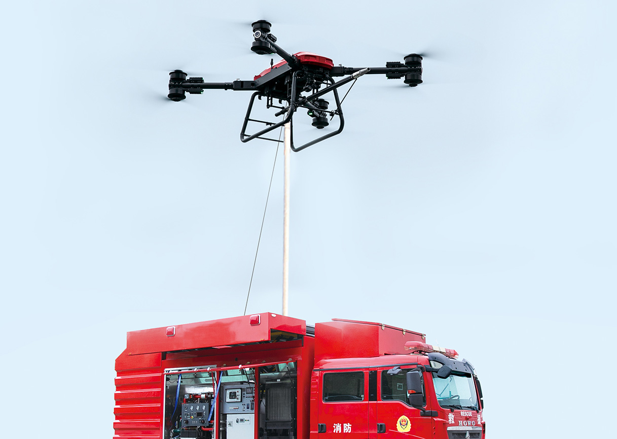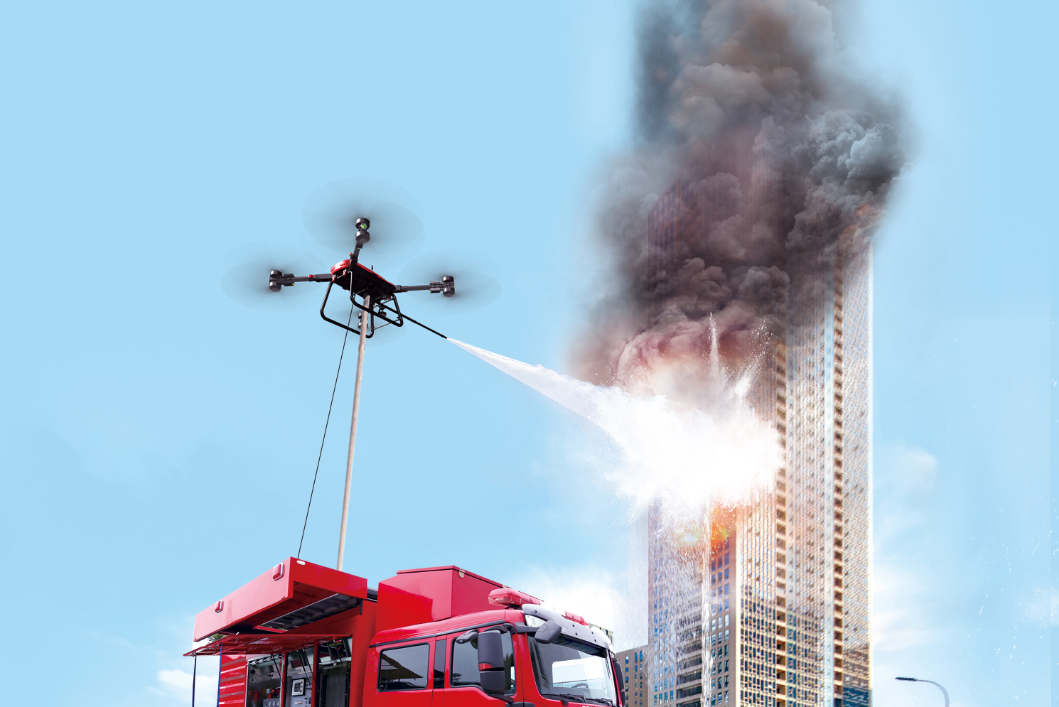 全新升级机车联动高层灭火救援系统,集“系留喷洒、地面扑救、消防巡检、应急供电、移动指挥” 多功能于一身的强大消防作战装备,极大提升消防无人机的实战能力,进一步提升灭火救援效率。