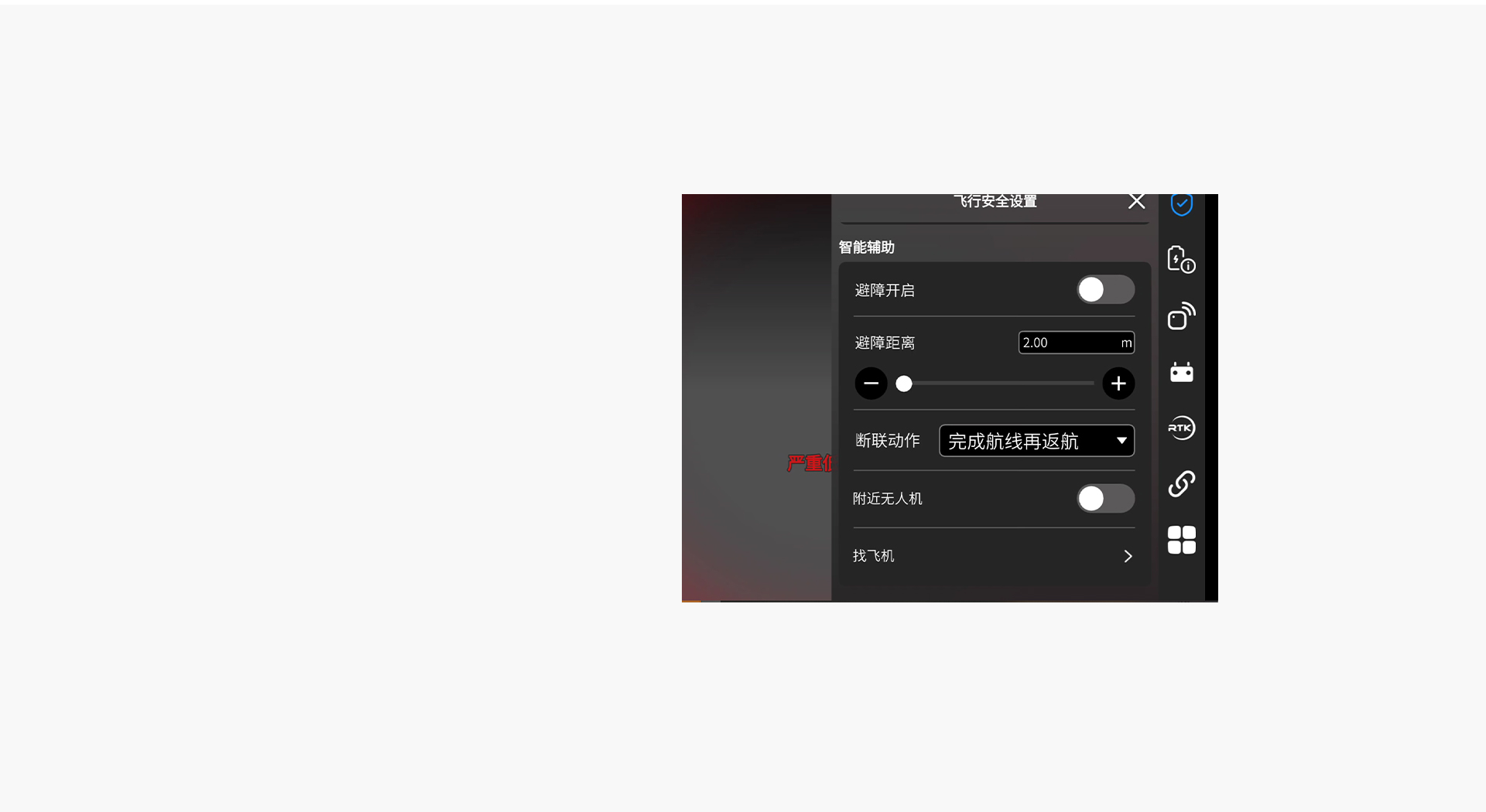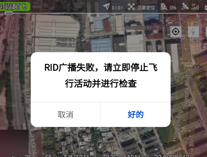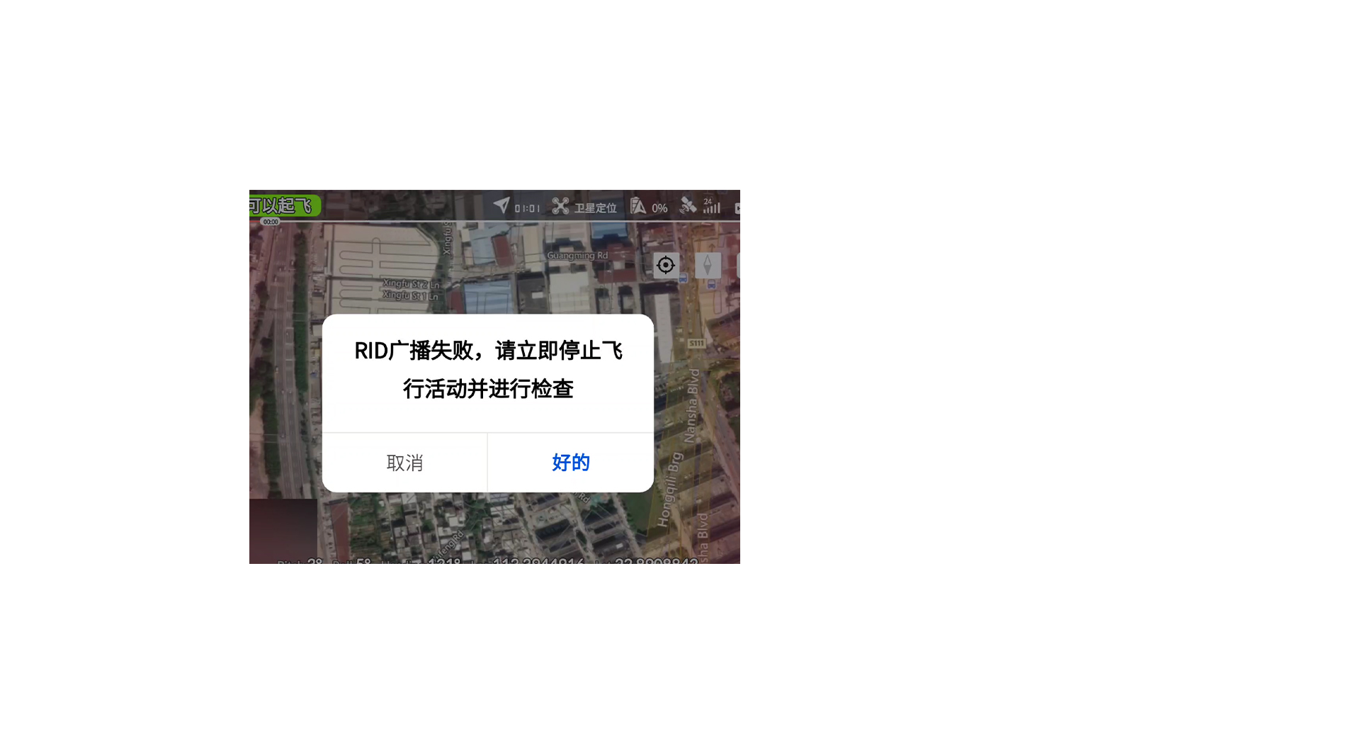 实时显示RID广播状态,异常或失败时APP立即弹出醒目弹窗,强制提醒用户停止飞行并返航,提供一键返航引导。杜绝违规风险,让监管部门和用户安心。